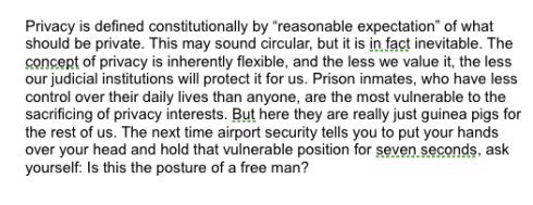 Who benefits when privacy mutates from an inalienable human right into a suspect form of “hiding”?  In his shameless promotion of the Naked Machine, former Homeland Security secretary Michael Chertoff is one obvious beneficiary, though as Chris Hedges recently documents, the ascendence of the Naked Crowd has unleashed a vast new architecture for the military-industrial complex. Once the infrastructure for total information awareness is in place, it will not be long before loose talk about privacy as an intrinsic quality of human liberty will be considered not just eccentric, but criminal.
