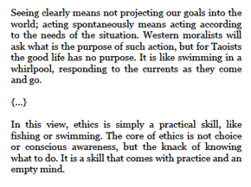 As Garner points out in his helpful commentary, the meaning of the passage depends very much on the philosophical baggage one brings to the sacrificial altar. With the turn of a new millennium (Straw Dogs dates from 2002) Gray – who had once carried rather heavy baggage – appears anxious to travel light. In his chapter The Vices of Morality, passage fourteen, he writes: