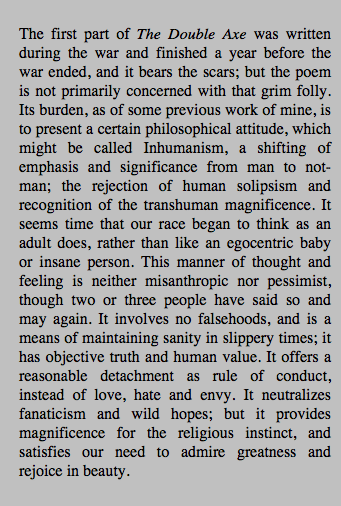 In recent days, we have been rediscovering the poetry and philosophy of Robinson Jeffers. In his remarkable preface to The Double Axe (1948), Jeffers writes: