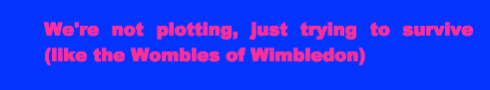 KKS Originally the mole cabal was supposed to be a group of people working on performance projects, but schedule is a beast. I suppose I liked the fiction of being part of a posse of moles, so I never dropped the cabal. And I’m suspicious of the proprietary or expressive frame around creative work. In my mind, the mole cabal is not the proletariat or anything, but does expand beyond just me, connecting I’m sure to other cabals. We’re not plotting, just trying to survive (like the Wombles of Wimbledon). Or maybe plotting in the older sense of plot, as a garden plot, a patch of worked earth.