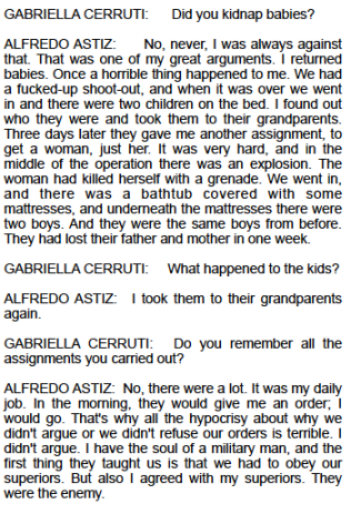 Nine death flight pilots are among the defendants, as is the notorious former intelligence officer and brutal kidnapper Alfredo Astiz, also known as El Ángel Rubio de la Muerte, or the Blond Angel of Death. In this context, it may be useful to recall an interview given by Mr. Astiz in 1998, first published in Tres Puntos; sub-headings and photos added by DP.