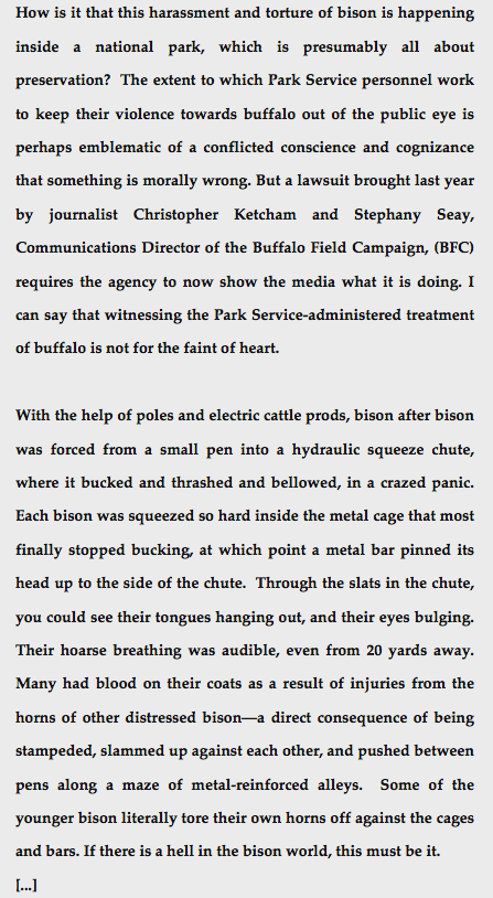 Grizzly Times publisher Louisa Willcox bears witness to the National Park Service “management” of bison deemed excess to requirements; images added by DP.