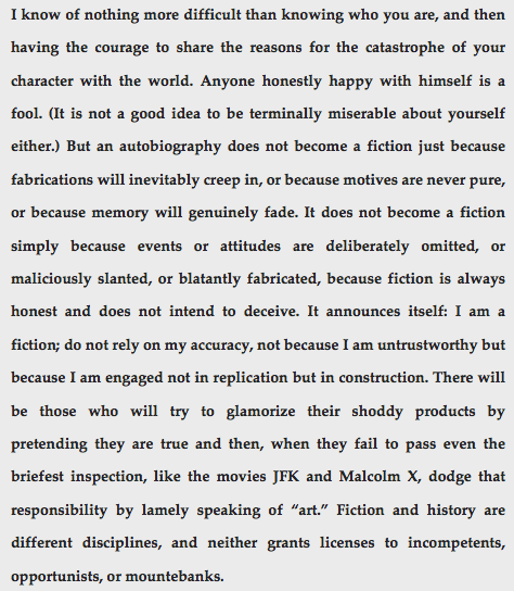And second, from his richly mined essay on the challenges of autobiography, dating from 1994: