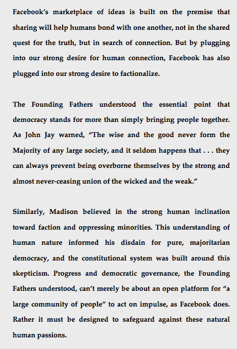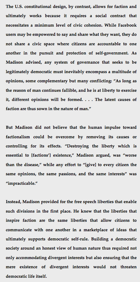 “As the cool and deliberate sense of the community ought, in all governments, and actually will, in all free governments, ultimately prevail over the views of its rulers; so there are particular moments in public affairs when the people, stimulated by some irregular passion, or some illicit advantage, or misled by the artful misrepresentations of interested men, may call for measures which they themselves will afterwards be the most ready to lament and condemn.”
