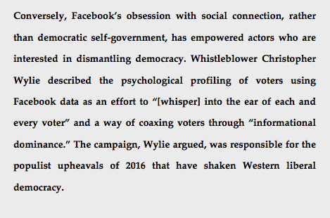 Regarding those deeply interested and engaged with dismantling democracy, we urge brief meditation upon the following communication, that exceeds even the darkest impulse towards satire, given the events of recent days, weeks, months:
