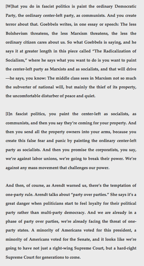 So, three, anti-intellectualism. As Steve Bannon said, it’s emotion—rage gets people to the polls. We got elected on “Lock her up!” and “Build the wall!”