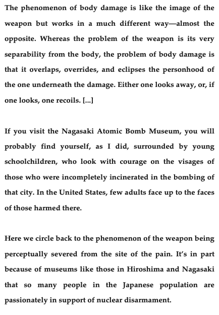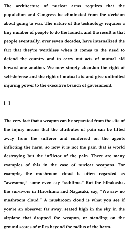 In the aftermath of this year’s Hiroshima Day, we offer a few excerpts from a wide-ranging interview with Elaine Scarry roaming the key themes of her book, Thermonuclear Monarchy, published (and largely ignored) five years ago.