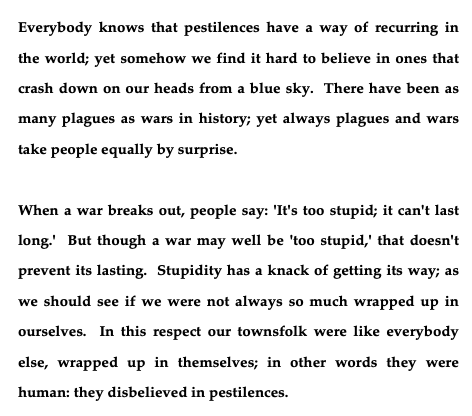 We begin this week with a favorite passage from Albert Camus’ classic exploration of the psychology of an epidemic, The Plague:
