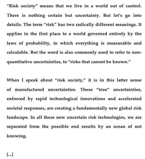 Next come excepts from an interview (2003!) with sociologist Ulrich Beck, who explored related themes of embedded risks and uncontrollability, by other means. Images are bounced from the studio of data artist Laurie Frick, based on visual/material representations of her sleep patterns.