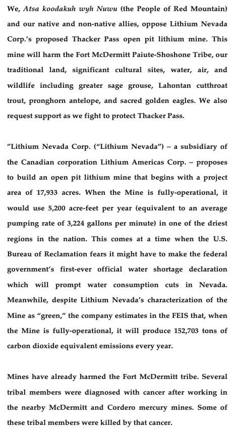 This week, we serve to amplify indigenous voices raised in opposition to the Nevada Thacker Pass lithium mine project.