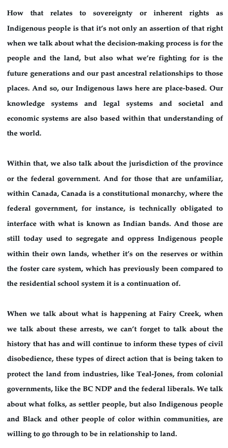 This week, we return again to the blockade at Fairy Creek via the voice of indigenous forest protector Kati George-Jim, interviewed yesterday on Democracy Now. Transcribed excerpts below.