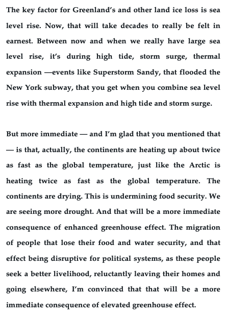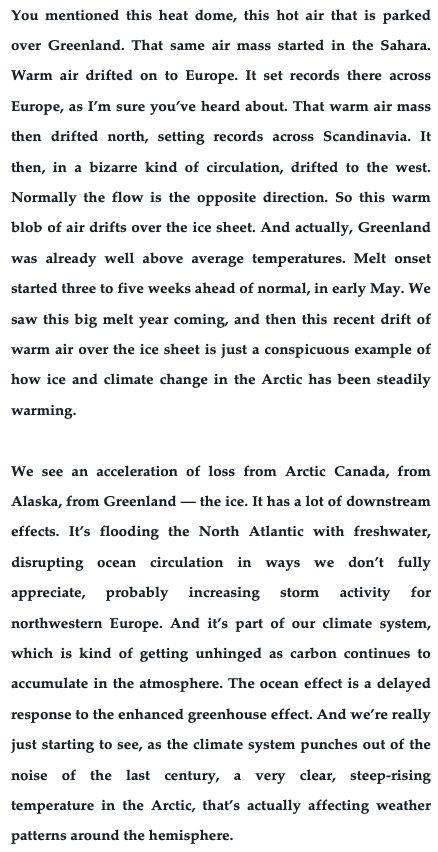 Even on a sailboat in the middle of the Atlantic Ocean, I heard about the forests in the Amazon rainforest — the fires in the Amazon rainforest, yeah. And it is, of course, devastating, and it’s so horrible. It’s hard to imagine. So, I mean, we need to — I mean, this is a clear sign that we need to stop destroying nature, and we need — and our war against nature must end.