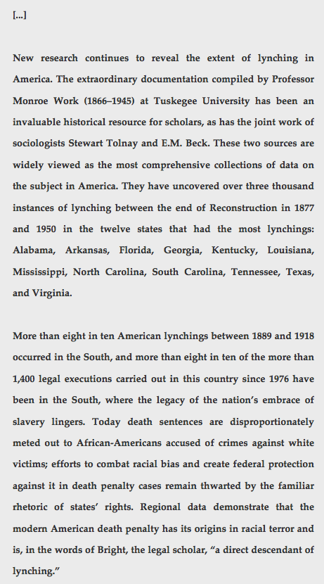 Images are from the most powerful work of public art in North America: the museum and memorial created by Stevenson’s Equal Justice Initiative in Montgomery, Alabama.