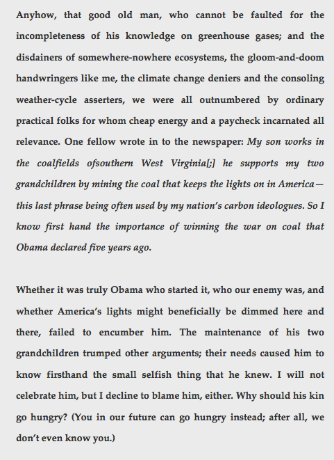 Now comes the remarkable writer William T. Vollman with an excerpt from No Immediate Danger, the first volume in a series that will explore the many delusional stories we conjure to justify our unwillingness to change behavior — except in the most trivial ways — while in the midst of the sixth extinction. His title refers to the narrative superimposed by Japanese government and corporate reality spinners in the aftermath of Fukishima.