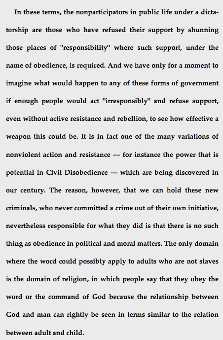 In Eichmann in Jerusalem, Arendt had written in 1963: