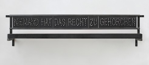 In May 2011, Eichmann’s bullet proof box was transported to Berlin for the first time, to feature in an exhibition within the Topography of Terror on the exact site of the former Reich Main Security Office, where memory traces of Eichmann’s DNA might still be detected. The exhibition questions Arendt’s analysis of Eichmann as the embodiment of her phrase “banality of evil”, contending that as a high ranking official in the SS and underling to genocidal fanatics such as Heydrich and Himmler, he was a true believer motivated not just by duty but by conviction. Letter perfect in his role as recording secretary in the formulation of the Final Solution, he then pursued its practical application with ideological fervor. Neither obedient civil servant nor the human embodiment of demonic evil, Eichmann was rather a remorseless Nazi fully conscious of his role within the meticulously networked death machine. An annotated map charts Eichmann’s business trips to sites like Auschwitz, Sobibor and Treblinka, to assess efficiency at the sites where packages became corpses.