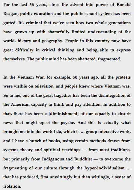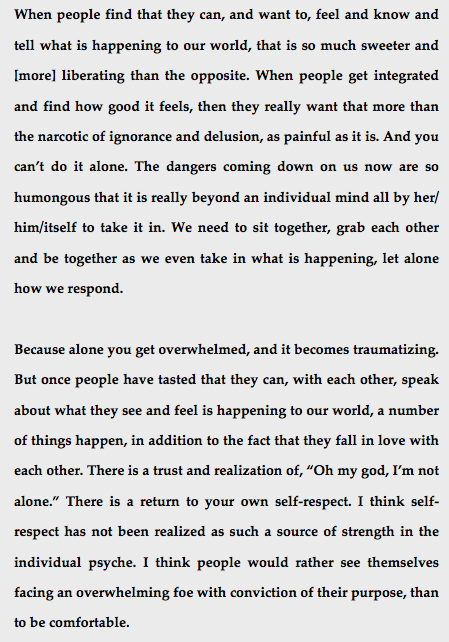 This week, we bend our ears once again to the voice of esteemed elder Joanna Macy, in passages brought to our attention by DP correspondent Janet Coster, as found by her within Bill Plotkin’s Nature and the Human Soul. Images of Smithson’s drawings in the conceptual vicinity of Spiral Jetty added by DP.