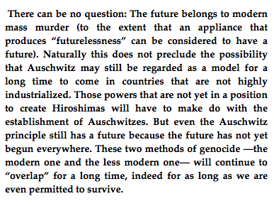 We recall Günther Anders’ “philosophy of discrepancy”, and his inverted utopians, unable to imagine the things they make. They are also, it seems, unable to conceive the implications of the things they unmake. Nonetheless, those who shake more than they can hold arrive for their last supper immaculately groomed. What fate becomes such a civilization? From the poet and DP correspondent Jon Swan, we receive the following answer: