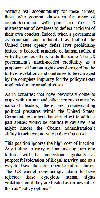 As for the long term price of impunity for the perpetrators of these abhorrent crimes, we turn to a second well documented report, submitted by Human Rights Watch in July, 2011: