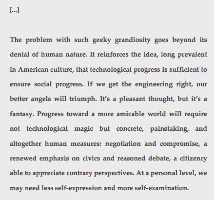 One simple direct action that every thinking person can perform to resist the “irresistible”: delete all social pseudo-networks, withdraw from the data mine to the maximum extent possible and refuse to eat (and be digested by) junk internet media.