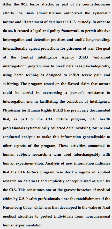 “Guantánamo is a place of harm. First and foremost to the men confined within its walls. But also to the medical professionals enlisted into abusing detainees, in violation of their ethical obligations. And, finally, to the United States’ reputation as a defender of human rights and the rule of law.”